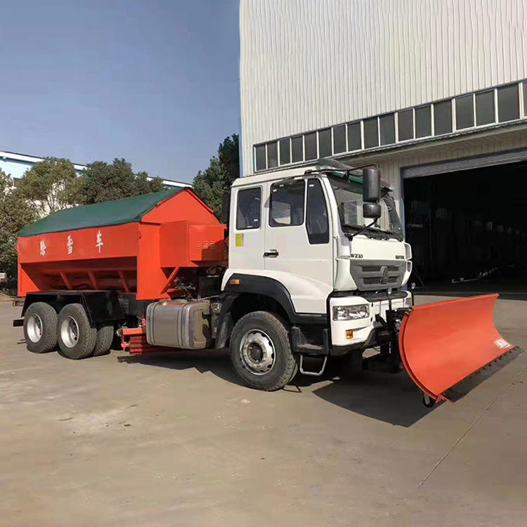รถตักหิมะติดตั้งบนรถบรรทุก พร้อมเครื่องกำลังขับเคลื่อนสำหรับทำความสะอาดหิมะบนถนนในเขตเทศบาล