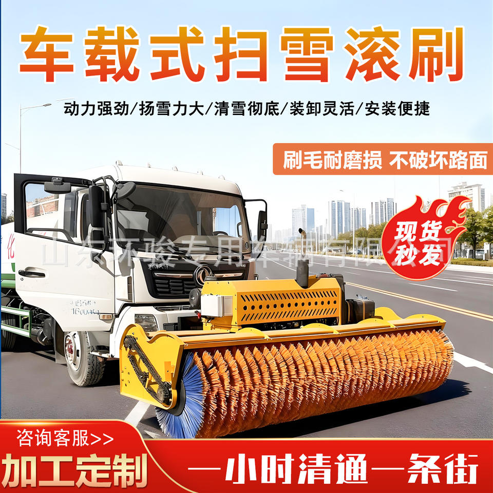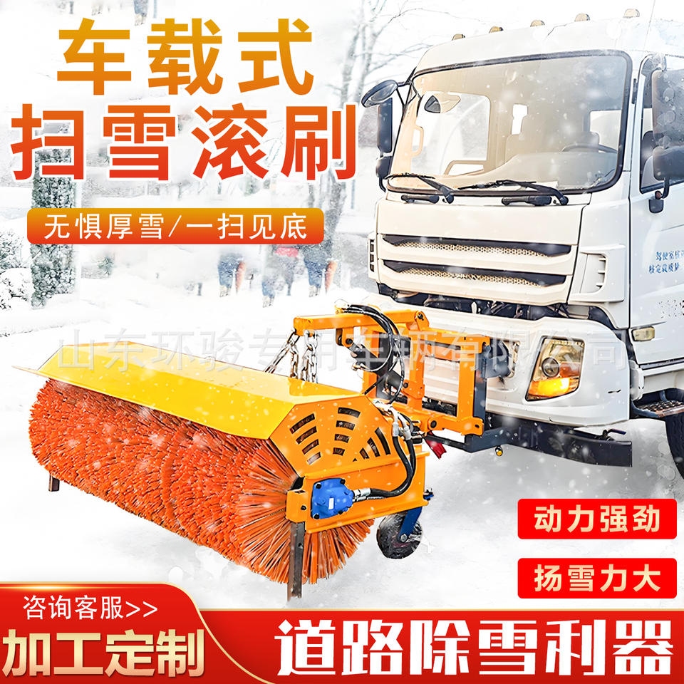 แปรงกวาดหิมะติดตั้งบนยานพาหนะสำหรับพื้นผิวถนน กำลังขจัดหิมะขนาดใหญ่ เครื่องกวาดหิมะสำหรับถนนในเขตเทศบาล ยานพาหนะติดตั้งเครื่องกวาดหิมะ