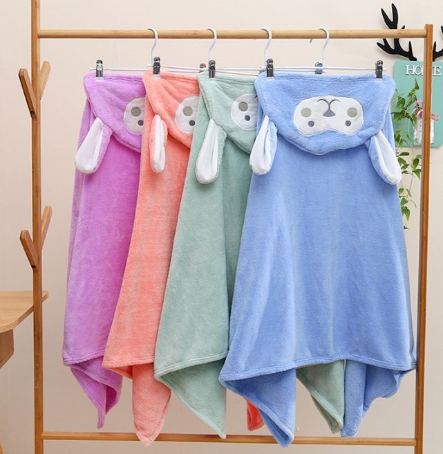 ผ้าคลุมอาบน้ำกำมะหยี่แบบมีฮู้ด หูกระต่าย สำหรับเด็กทารก ทั้งเด็กชายและเด็กหญิง