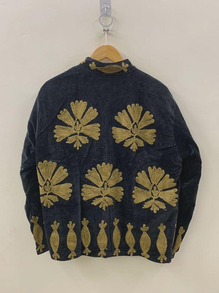 Suzani เสื้อโค้ทแขนสั้นผ้ากำมะหยี่ปักลายโบโฮแนวชนเผ่า