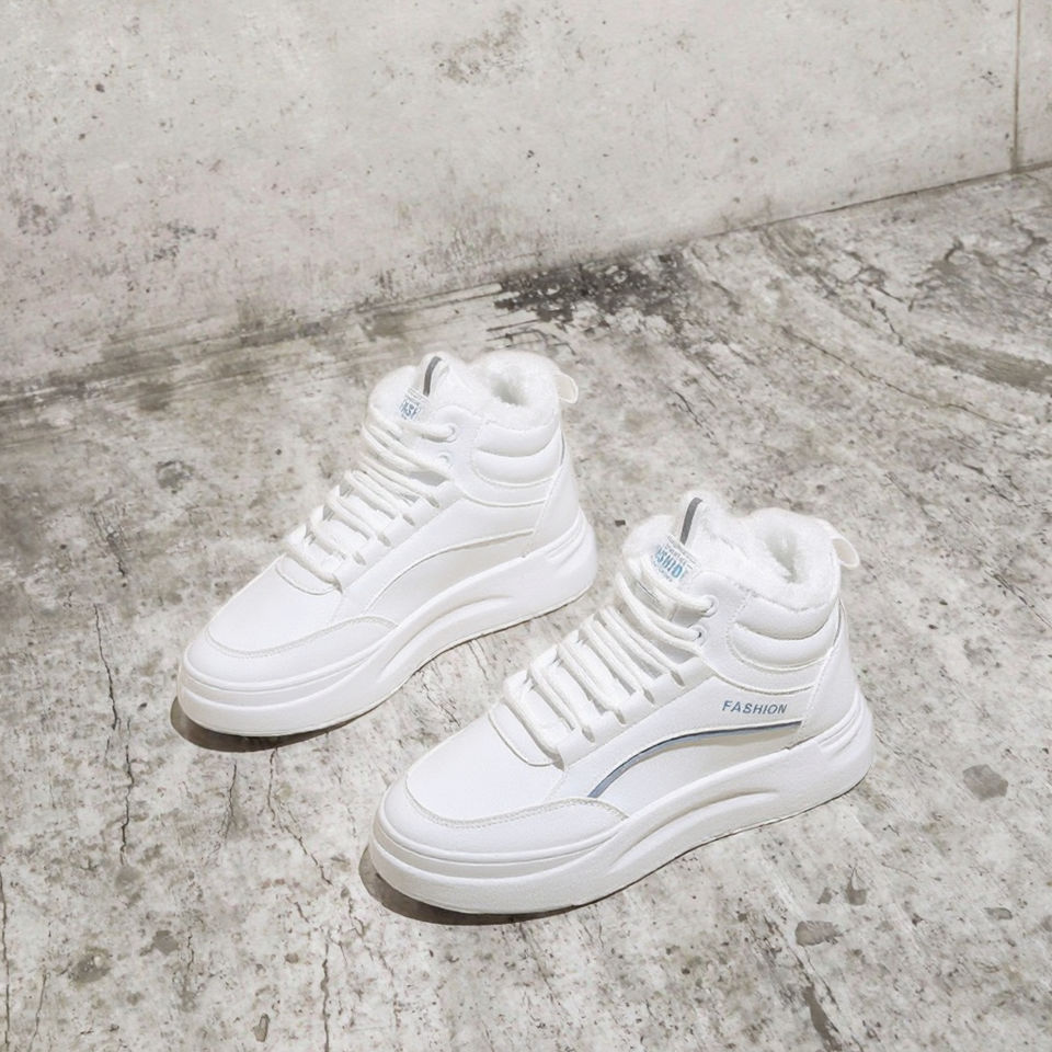 รองเท้าผ้ากำมะหยี่หุ้มข้อสูงสีขาวสำหรับผู้หญิง ฤดูใบไม้ผลิ/ฤดูใบไม้ร่วง/ฤดูร้อน รุ่นเกาหลี กันลื่น อเนกประสงค์ รองเท้านักเรียนแบบสวม ให้ความอบอุ่น