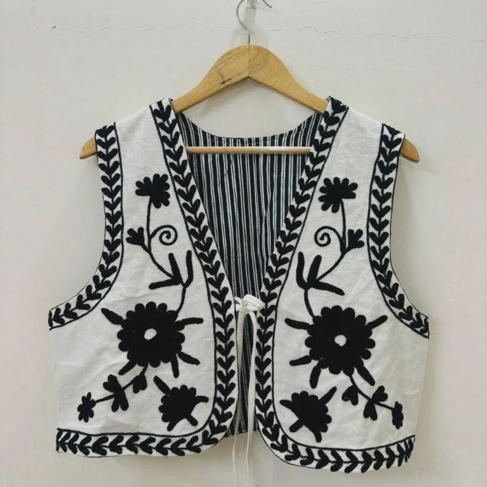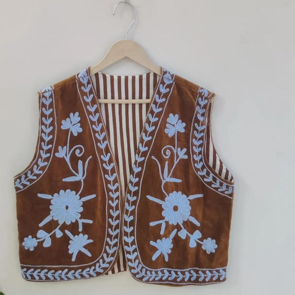 เสื้อกั๊ก suzani สำหรับค็อกเทลสั้นกำมะหยี่เสื้อกั๊กลายดอกไม้