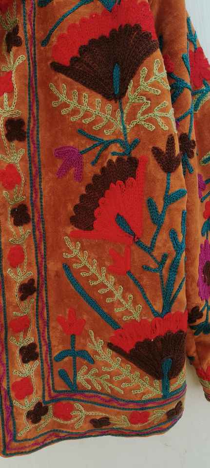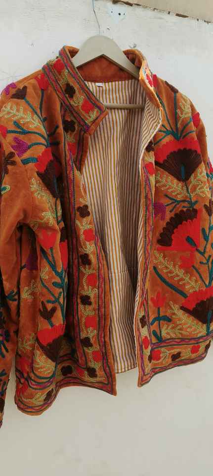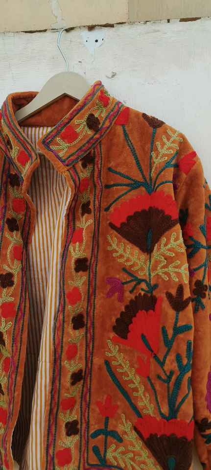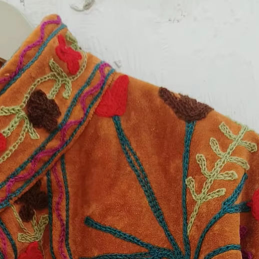 เสื้อแจ็คเก็ตปักลายดอกไม้สไตล์ซูซานี ผ้ากำมะหยี่ ทำมือ สำหรับฤดูหนาว เสื้อแจ็คเก็ตแบบ unisex บุด้วยผ้าฝ้ายด้านใน สไตล์โบโฮฮิปปี้
