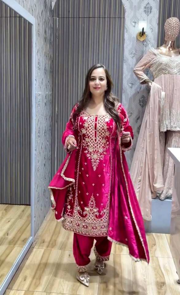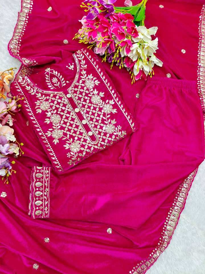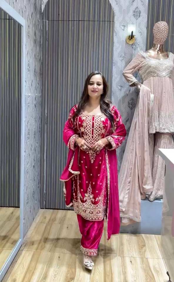 ชุด Dupatta กำมะหยี่ชั้นยอดพร้อมงานปักที่หนักหน่วง