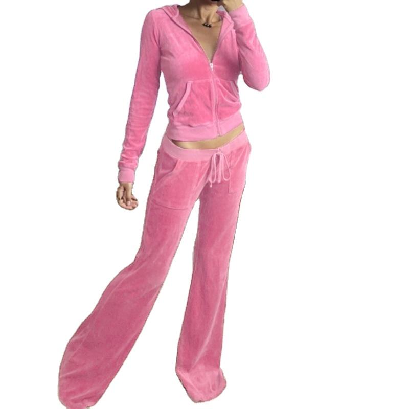ชุดวอร์มขนแกะแบบกำหนดเอง ชุดวอร์มซิปสำหรับฤดูหนาว ชุดลำลองปักลาย 2 ชิ้น ชุดวอร์มผู้ชายแบบจ็อกกิ้ง กางเกงขาบาน 2026
