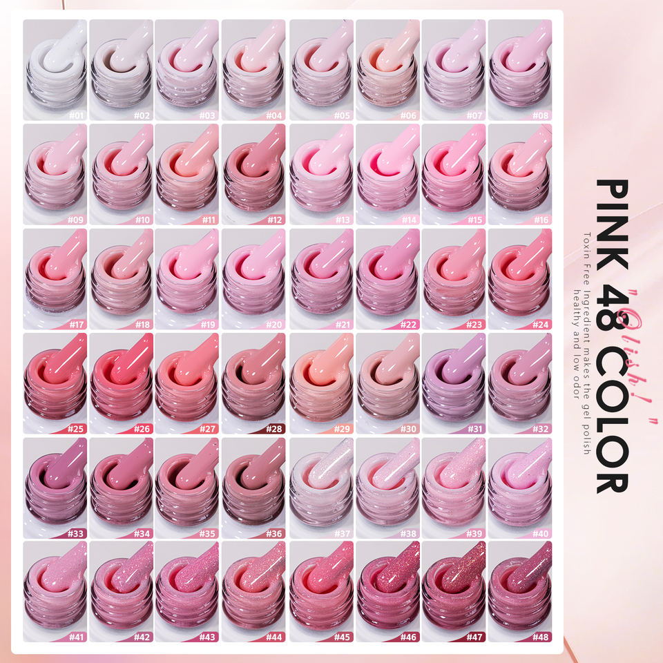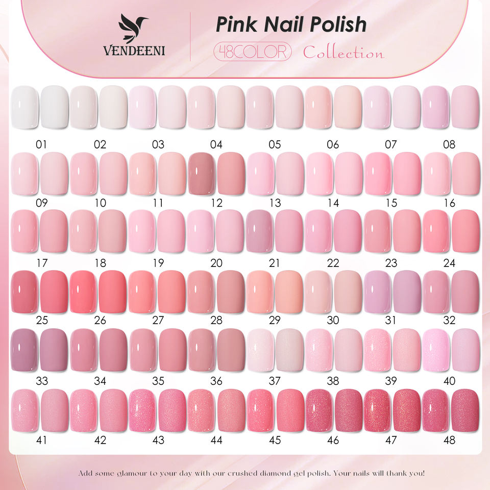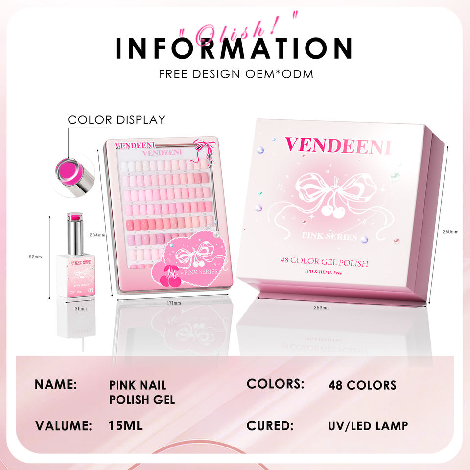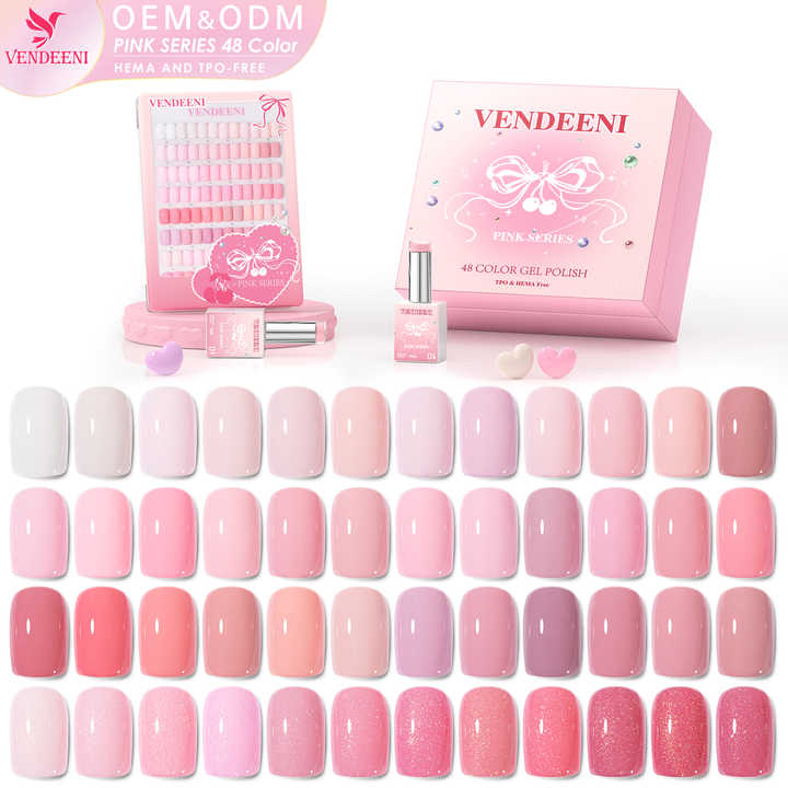 ชุดเจลทาเล็บสีชมพู 48 สี ยอดนิยมจาก Vendeeni ปราศจากสาร TPO และ HEMA รับผลิตแบบ OEM พร้อมติดฉลากส่วนตัว