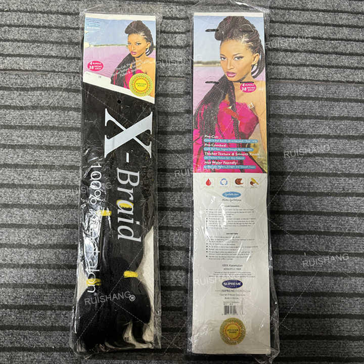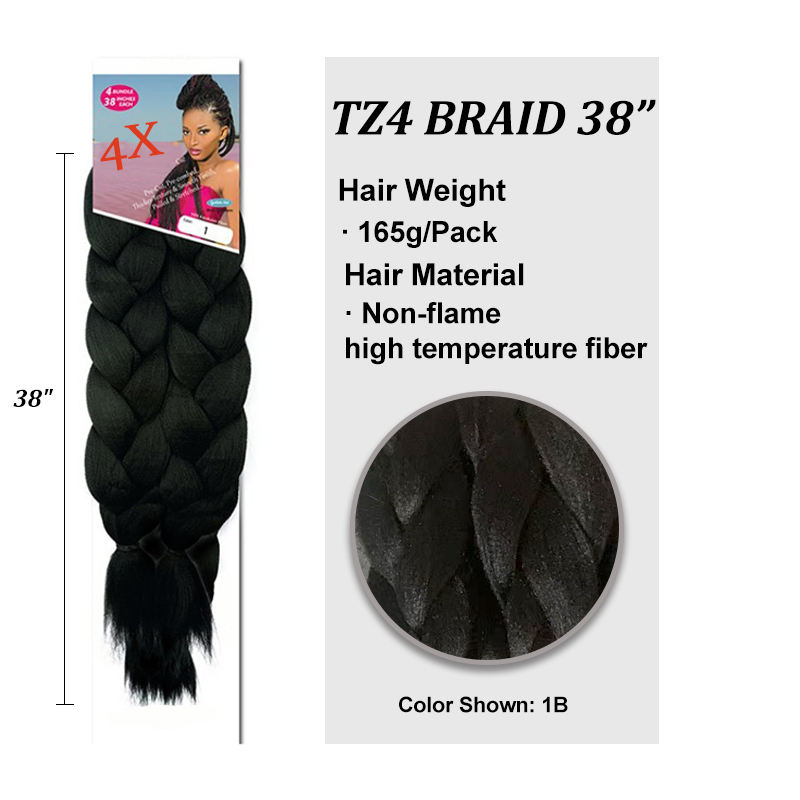 ผมเปียจัมโบ้ยืดสำเร็จรูป ขนาด 38 นิ้ว น้ำหนัก 165 กรัม 4 ช่อ