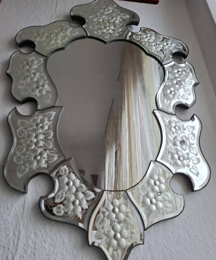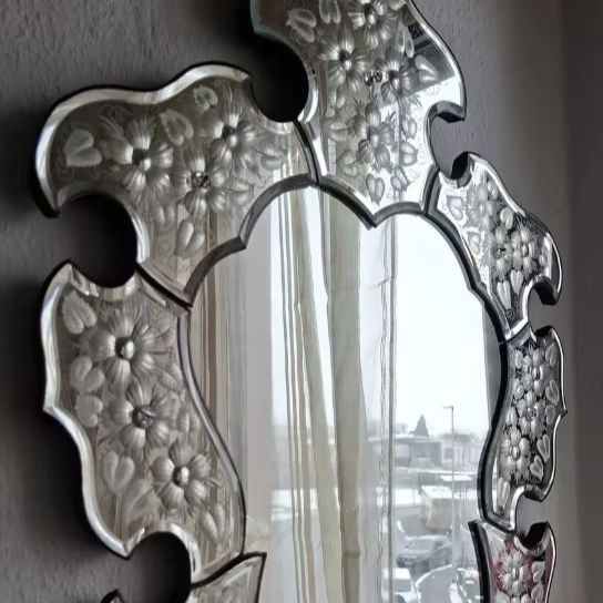 กระจกเวเนเชียน สไตล์มูราโน่ กระจกติดผนังลายดอกไม้สไตล์วินเทจ