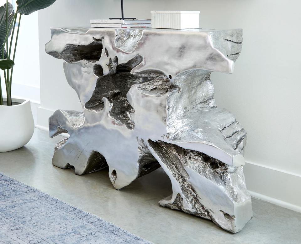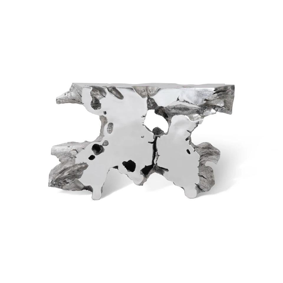 โต๊ะคอนโซลแบบปรับเปลี่ยนได้ รุ่นเวนิส ฟรีฟอร์ม สีเงิน ดีไซน์ศิลปะเหล็กแบบนามธรรม เฟอร์นิเจอร์ห้องนั่งเล่นทันสมัย สำหรับใช้ในทางเข้าบ้านและโรงแรม