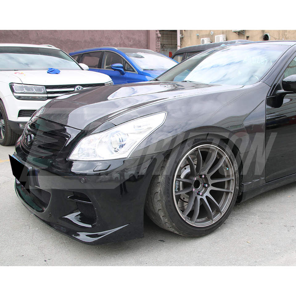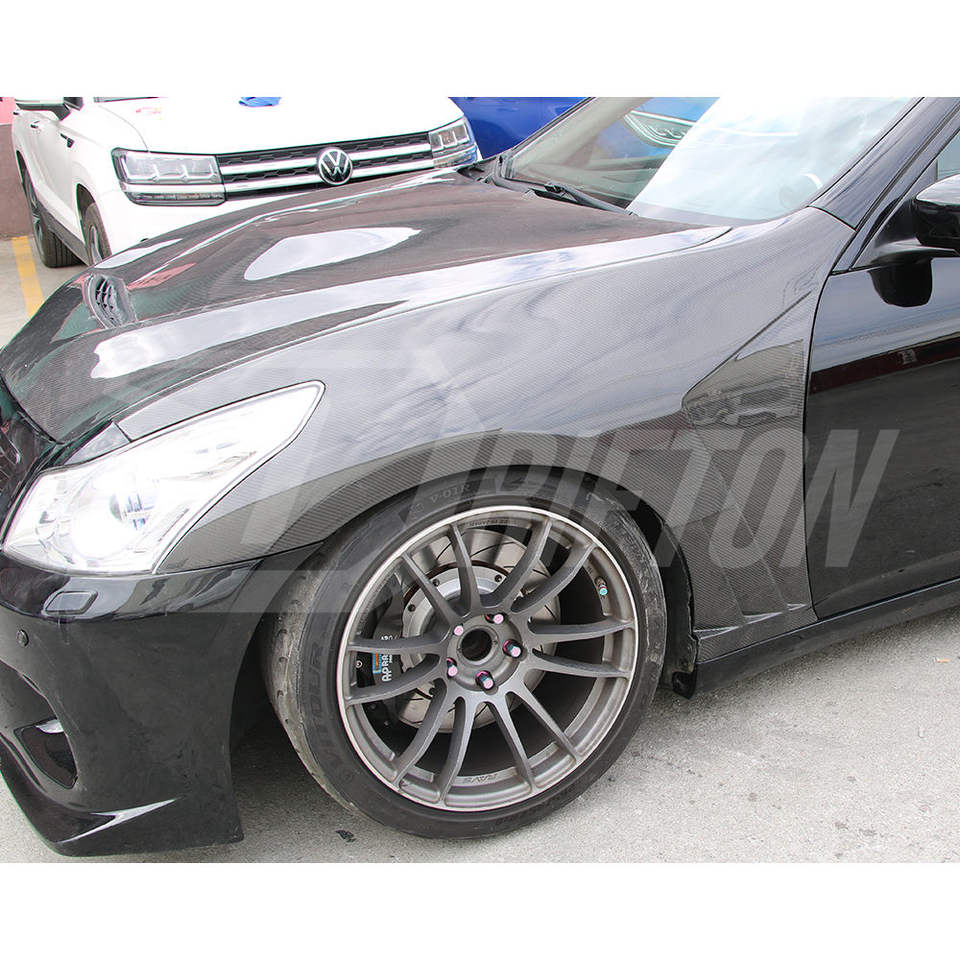 บังโคลนคาร์บอนไฟเบอร์ปลอมแปลง3K/6K/12K แบบเรียบ/ทวิล/ปลอมแปลงแบบมันวาวและเคลือบด้านสำหรับซีดาน G37 Infiniti 2008-2015
