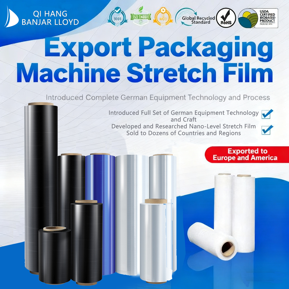 ฟิล์มม้วนสำหรับอุตสาหกรรมและร้านขายของชำ เกรดอาหาร หนา 25 ม. แบบเหนียวด้านเดียว ผลิตด้วยวิธีการเป่าขึ้นรูป สำหรับยึดสินค้าบนพาเลทให้แน่นหนา