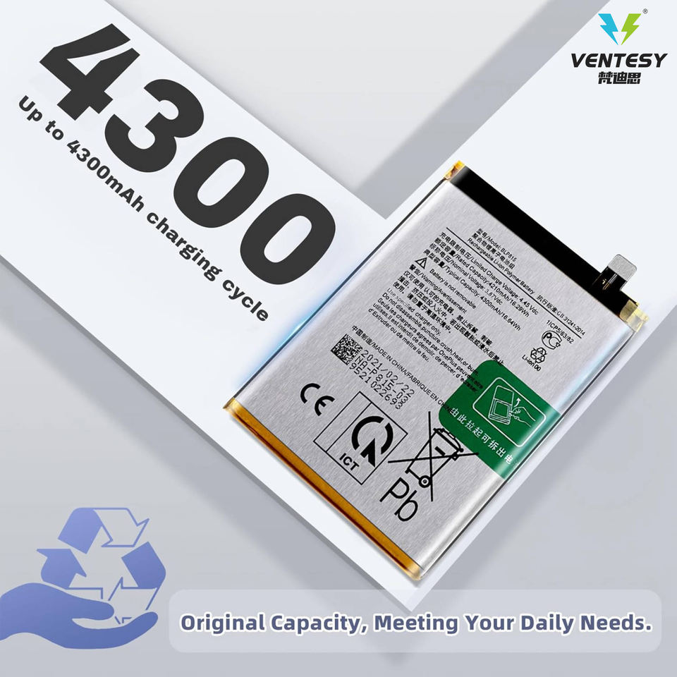 Ventesy แบตเตอรี่ลิเธียม BLP815แบบชาร์จไฟได้สำหรับ OPPO OnePlus Nord N10 5G อะไหล่สมาร์ทโฟน4300mAh ROHS รับรอง