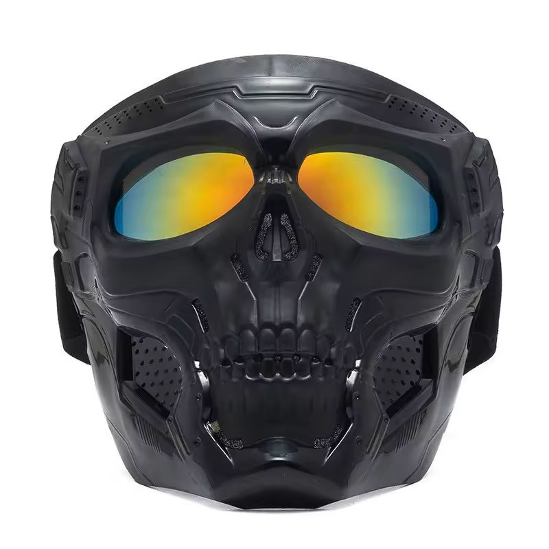 หน้ากากกะโหลกศีรษะยุทธวิธี ABS ระบายอากาศแว่นตากันลมป้องกันรังสียูวีสำหรับขี่มอเตอร์ไซค์และกิจกรรมกลางแจ้ง