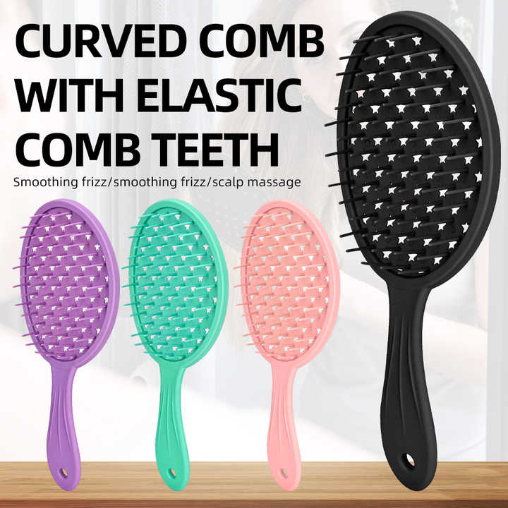 หวีนวดหนังศีรษะแบบมีรูระบายอากาศ ลายดาว 4 สี จับถนัดมือ สำหรับจัดแต่งทรงผมและสางผมทุกวัน