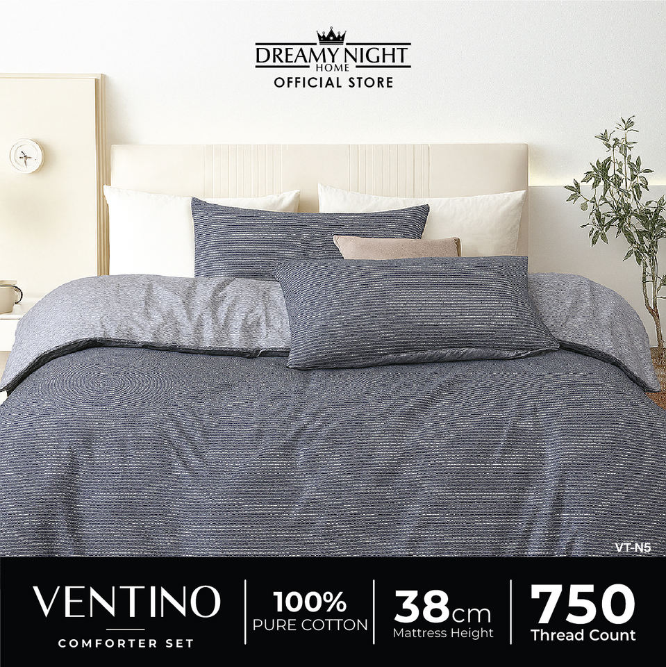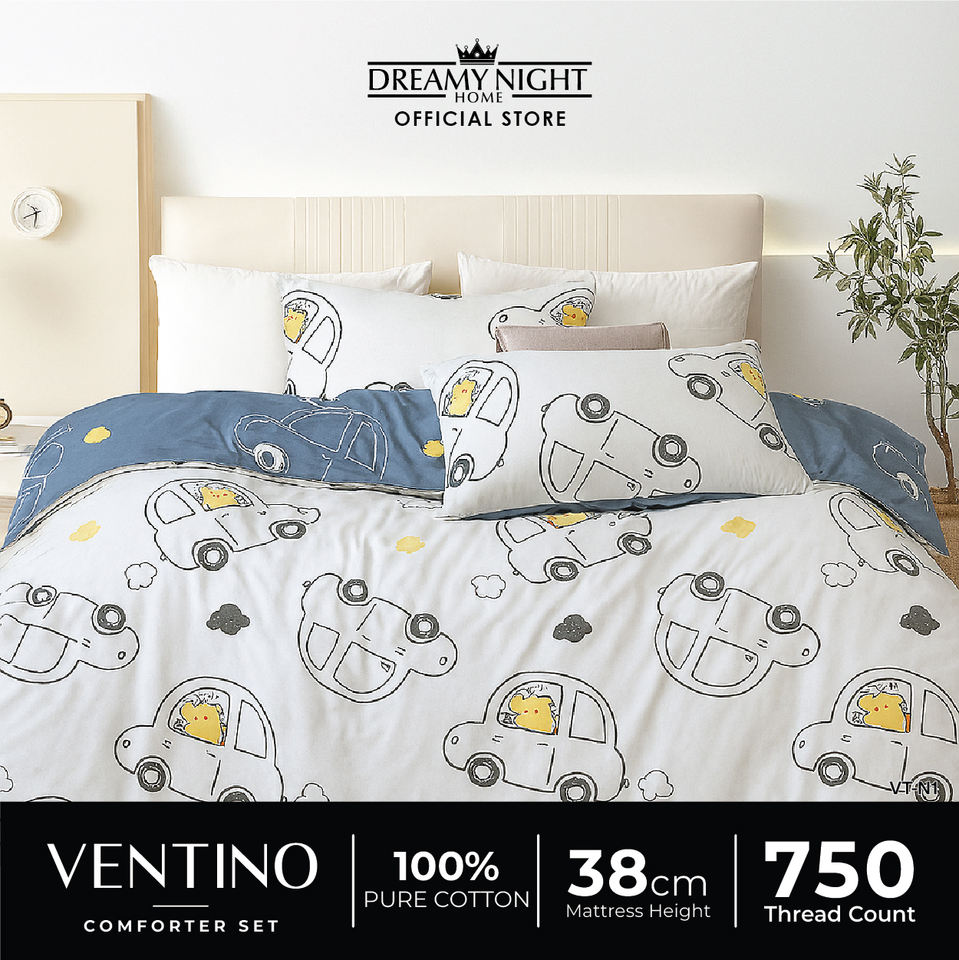 Ventino ชุดผ้าคลุมเตียงสุดโสดทำจากผ้าฝ้าย100% ดีไซน์การ์ตูนแนวนามธรรมลายดอกไม้750TC