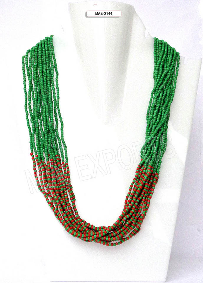 สร้อยคอเม็ดลูกปัดสีเขียวสดใส งานแฮนด์เมดจากอินเดีย เครื่องประดับแฟชั่นสำหรับผู้หญิงสำหรับงานปาร์ตี้ ขายส่งจำนวนมาก คอลเลคชั่นดีไซเนอร์