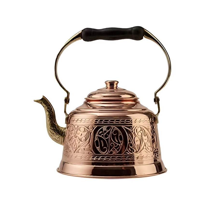 กาต้มน้ำจากผู้ผลิตที่ได้รับการยืนยัน พร้อมดีไซน์โบราณเคลือบทองแดง แบบอาหรับดั้งเดิม ทำด้วยมือ สำหรับชงชา