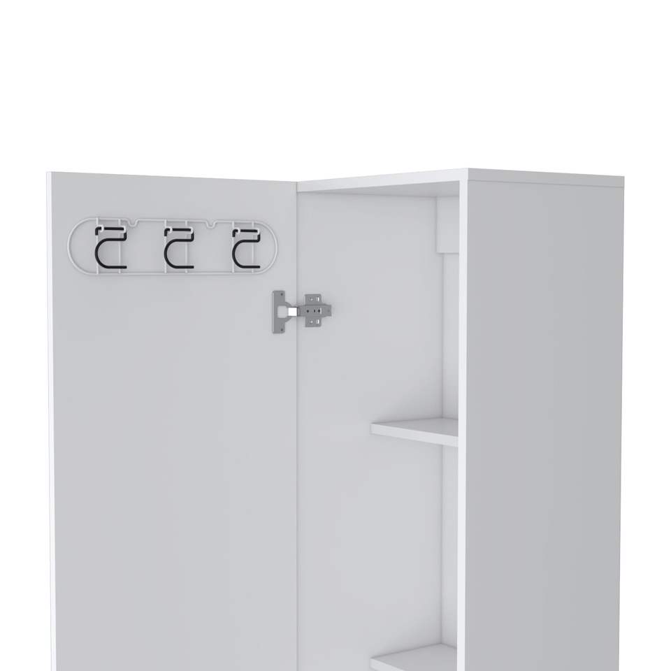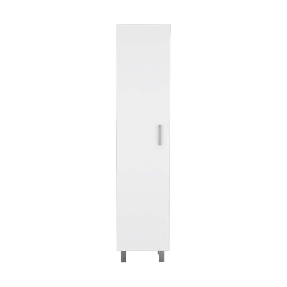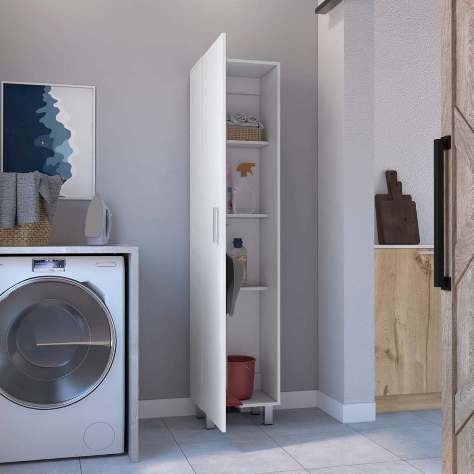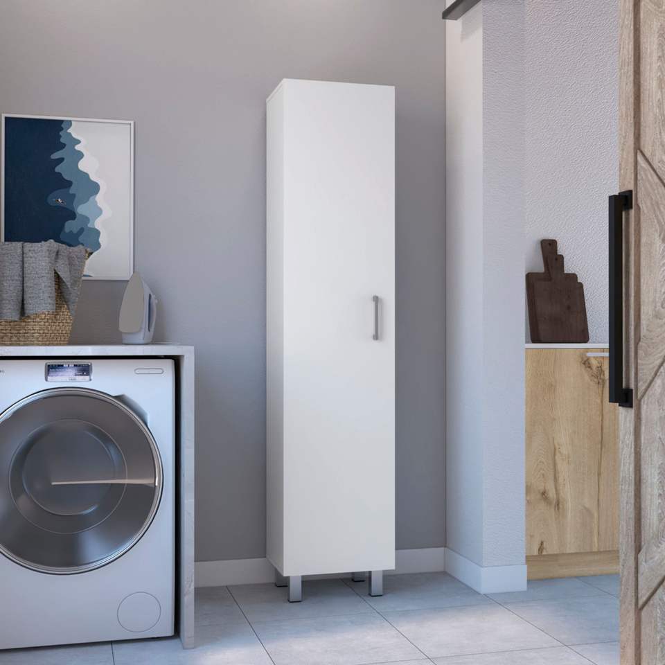 ตู้เก็บของเวอร์นอน สลิมพร้อมชั้นวางหวายสีขาว 4 ชั้นและที่แขวนไม้กวาด ดีพอท อีช็อป คอลเลกชันตะกร้าซักผ้า