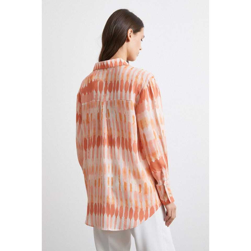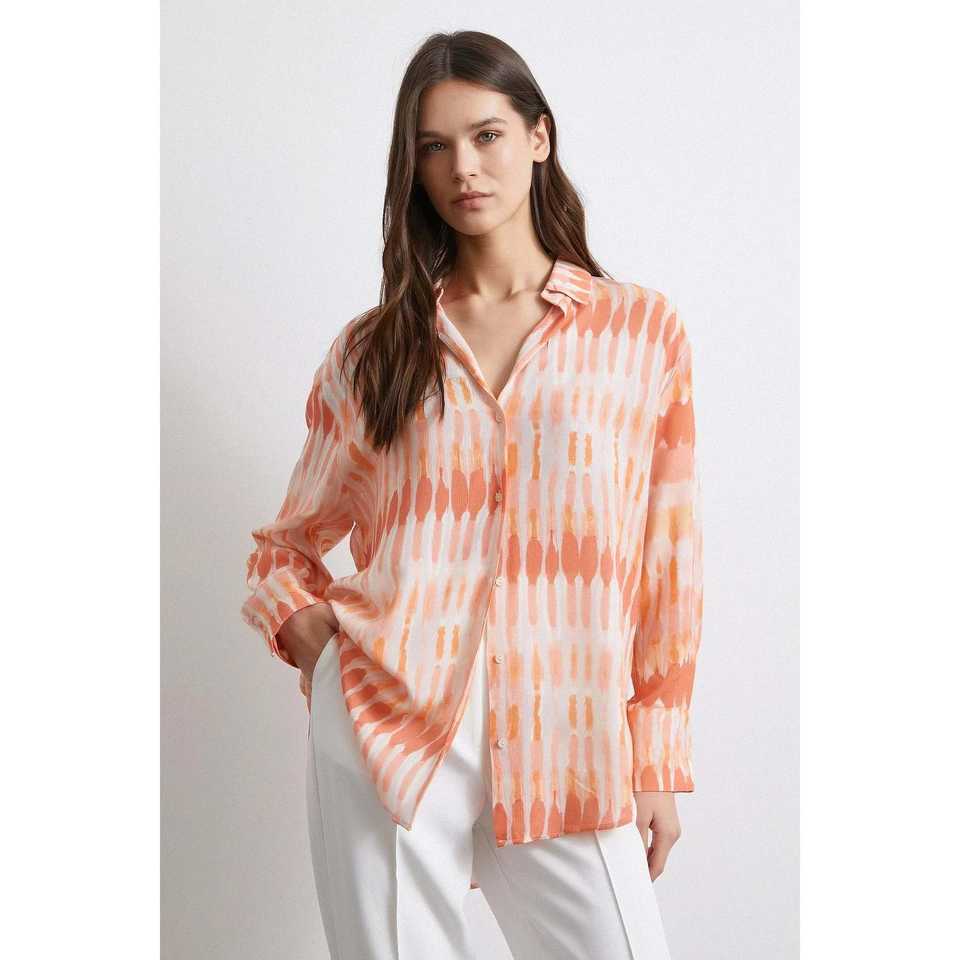 เสื้อเชิ้ตผู้หญิงเวโร โมดาพิมพ์ลายสีส้มสไตล์โบฮีเมียนสวมใส่ได้ทุกวัน
