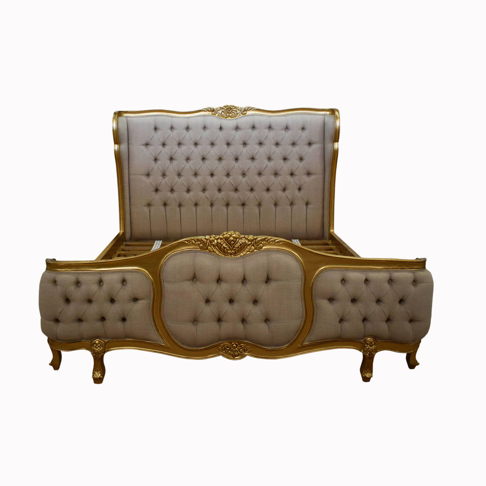 แวร์ซายโค้งหรูหราหุ้มเตียงทองเฟอร์นิเจอร์