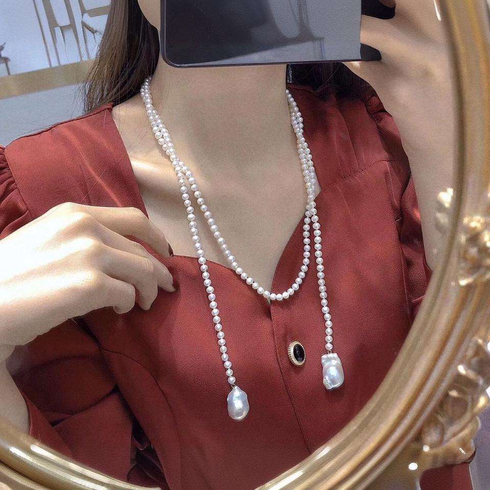 สร้อยคอมุกแท้หลากสไตล์ 125 ซม. ทรงบาโรก เม็ดมุก 5-6 มม. สายยาว สำหรับเสื้อสเวตเตอร์ สร้อยข้อมือ สายคาดเอว