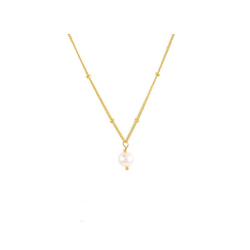 สร้อยคอไข่มุกน้ำจืดชุบทอง14K อเนกประสงค์เครื่องประดับหรูหราดีไซน์แบบกระดูกไหปลาร้าอินเทอร์เน็ตที่มีชื่อเสียงเรียบง่ายหรูหรา