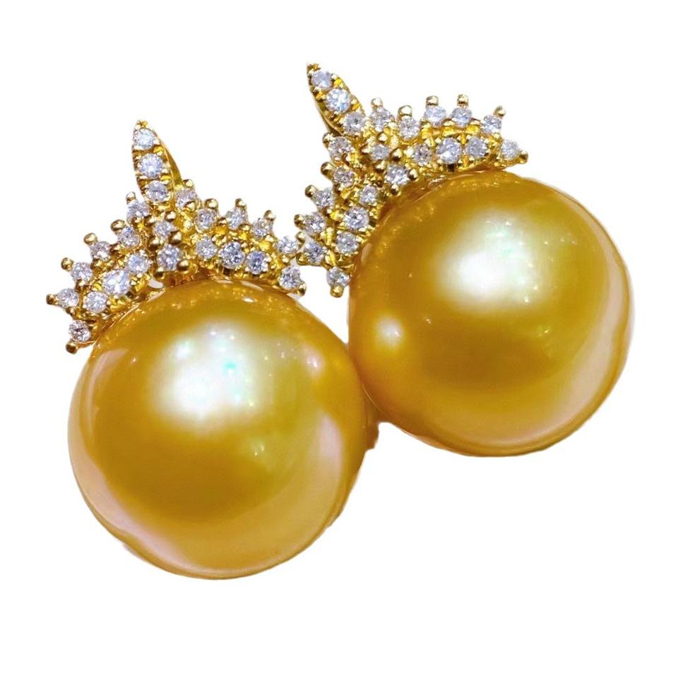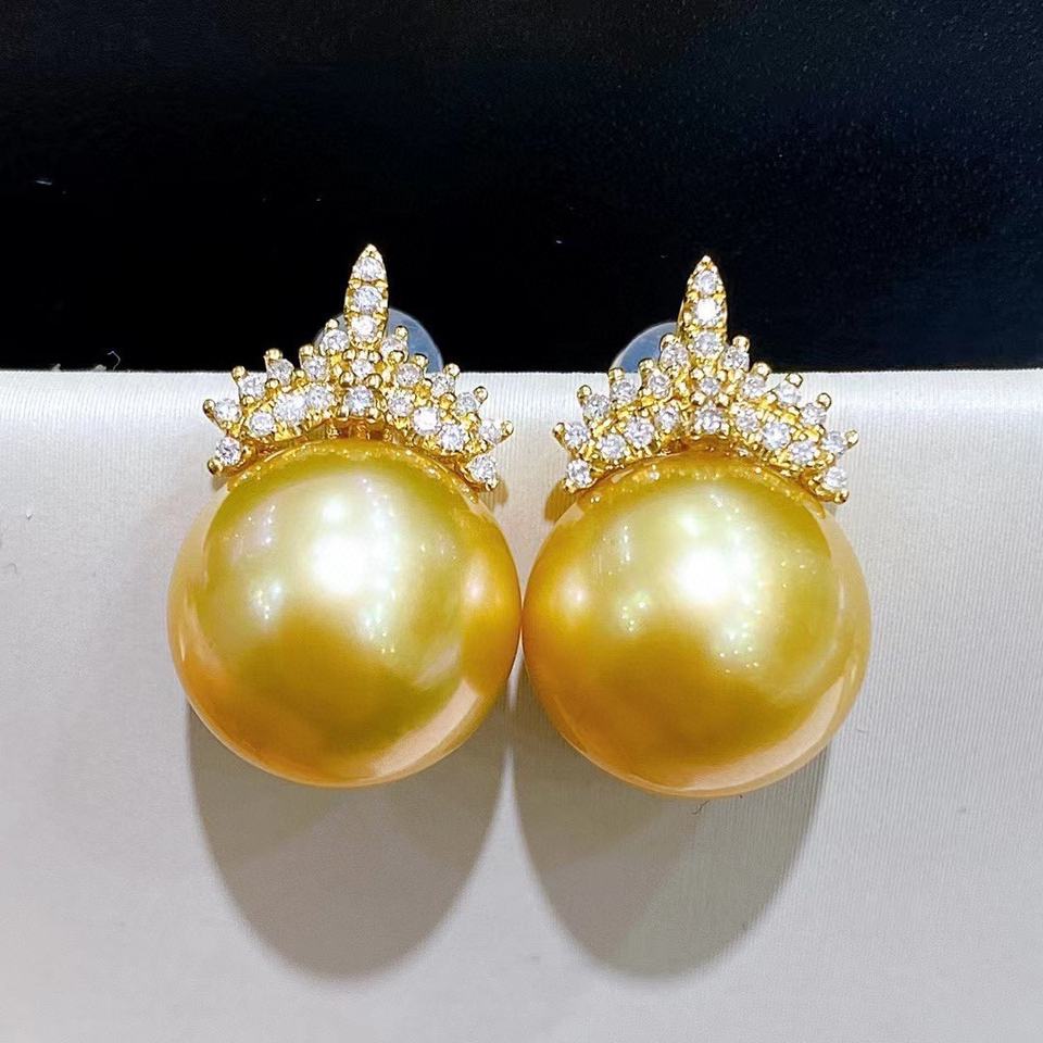 ต่างหูทอง 18K ประดับมุกทรงกลม ขนาด 12-11 มม. คุณภาพดี ไม่มีตำหนิ พร้อมเข็มทองแท้ ดีไซน์ทันสมัย เหมาะสำหรับใส่ไปทำงาน มาพร้อมกล่องของขวัญ