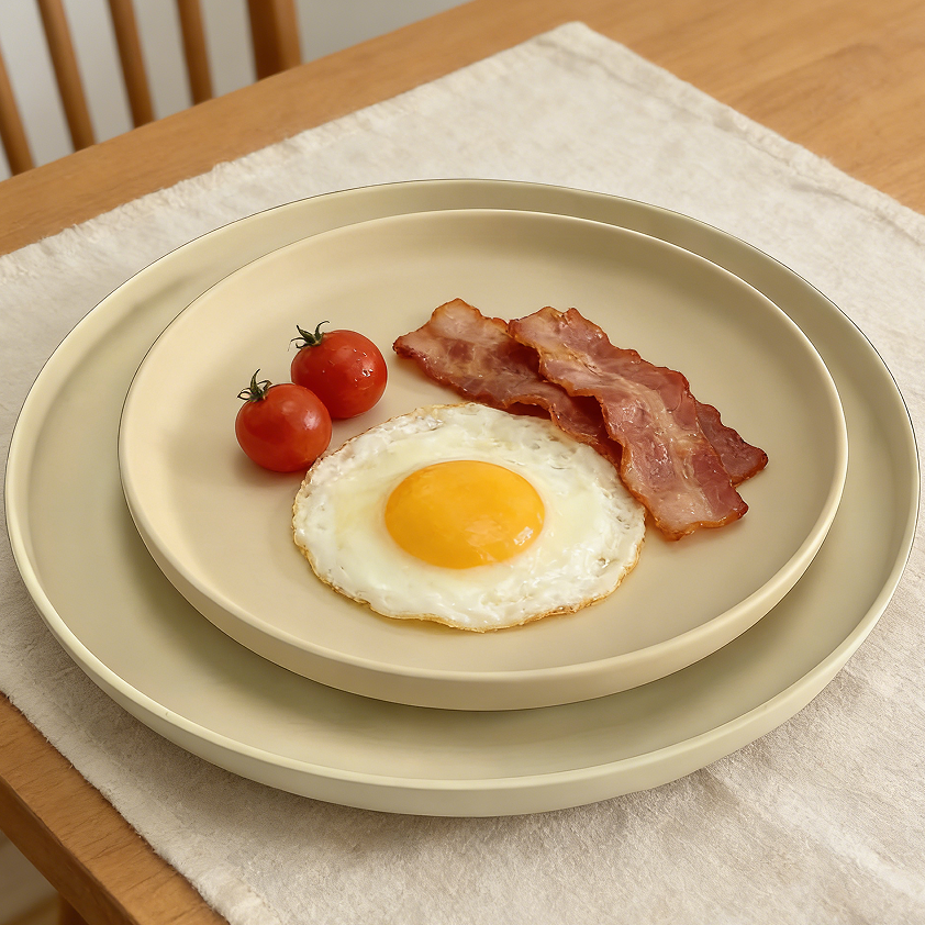 จานรองเมลามีนสำหรับอาหารเช้า แพนเค้ก เบคอน และอาหารเย็น