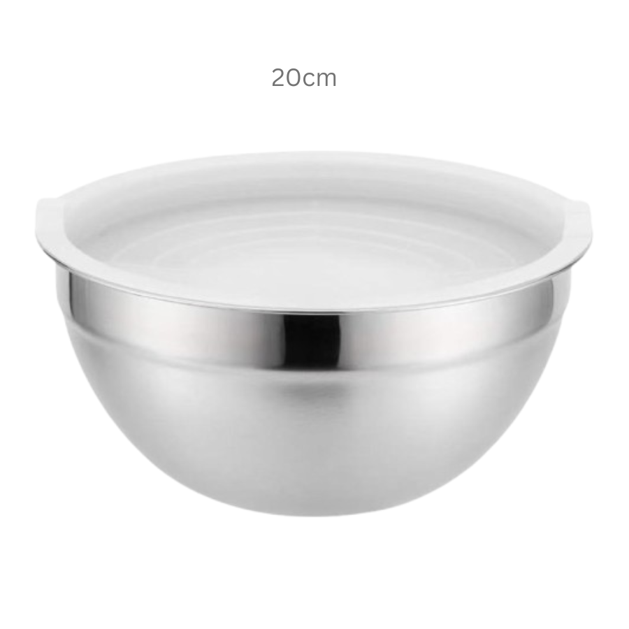 ชามผสมสแตนเลสอเนกประสงค์ขนาด20ซม. พร้อมฝาปิด: เหมาะสำหรับทำอาหารเก็บอาหารและเตรียมอาหาร
