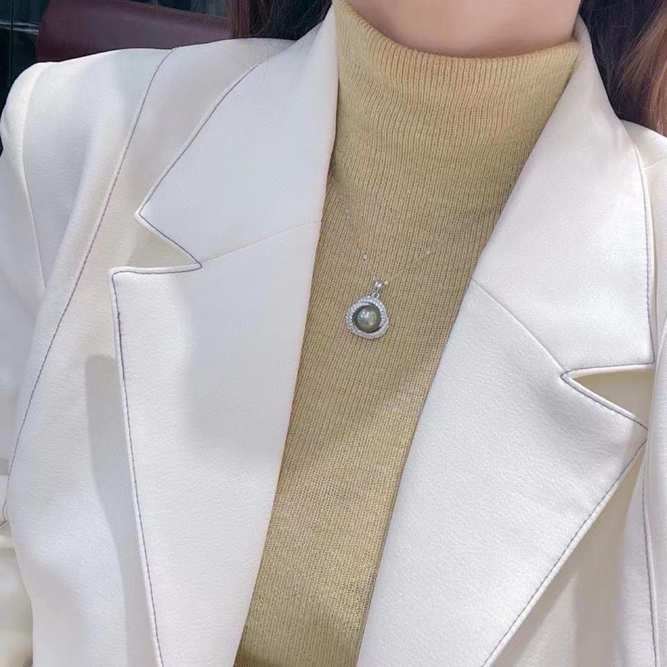 สร้อยคอจี้แฟชั่นทรงกลมสีทอง 9-10 มม. คุณภาพดี ไร้ตำหนิ พร้อมสายไข่มุกขนาดเล็ก 4-3 มม. ปรับความยาวได้ 3 ซม. ทำจากเงินแท้ S925