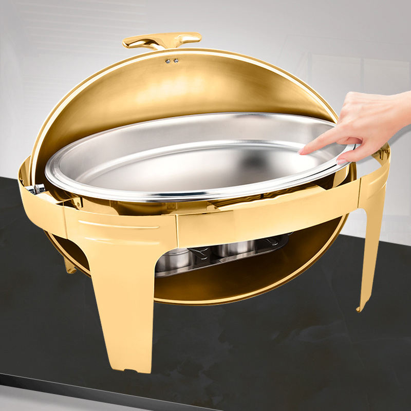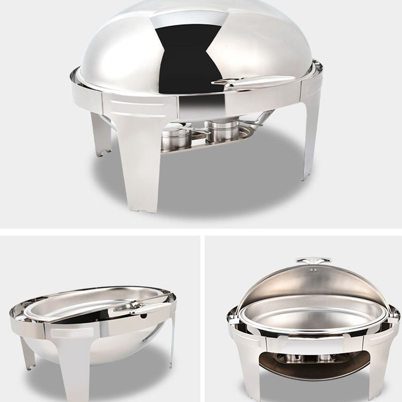 ชุดบุฟเฟ่ต์อาหารจานร้อนอเนกประสงค์วัสดุสแตนเลสแบบบุฟเฟ่ต์ดีไซน์แบบพกพา