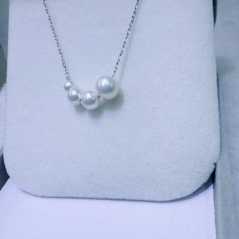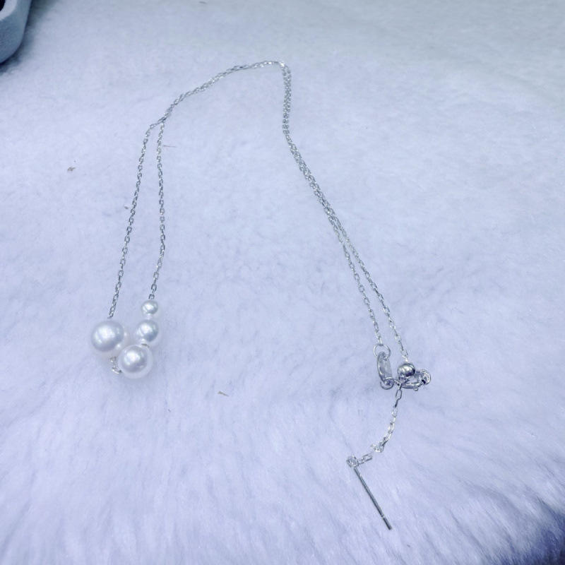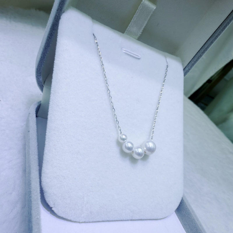 สร้อยคอมุกน้ำจืดธรรมชาติ 3-7 มม. ทรงกลม ไร้ตำหนิ พร้อมไล่เฉดสีเงินแท้ ใหม่และสง่างาม