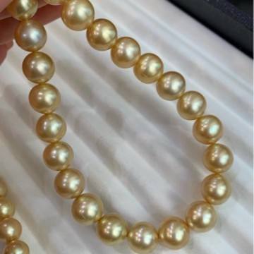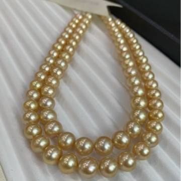 สร้อยคอมุกธรรมชาติสีเทา ดีไซน์หลากหลาย ขนาด 9-8 มม. ทรงกลม มีตำหนิเล็กน้อย ประดับด้วยตัวล็อคแบบโบว์ สำหรับใส่กับเสื้อสเวตเตอร์