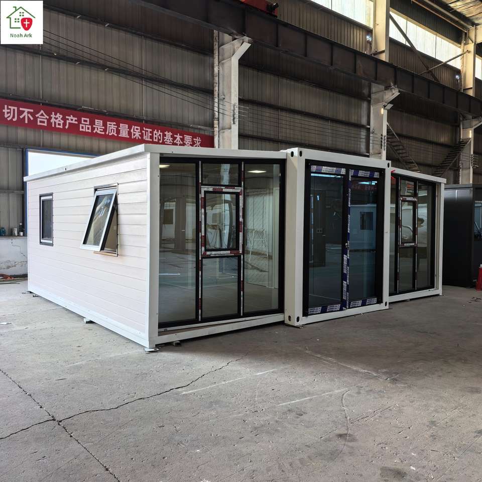 บ้านคอนเทนเนอร์พับได้อเนกประสงค์: ปีกคู่สำหรับการจัดวางแบบกำหนดเองเหมาะสำหรับเป็นเกสต์เฮาส์สตูดิโอหรือร้านป๊อปอัป