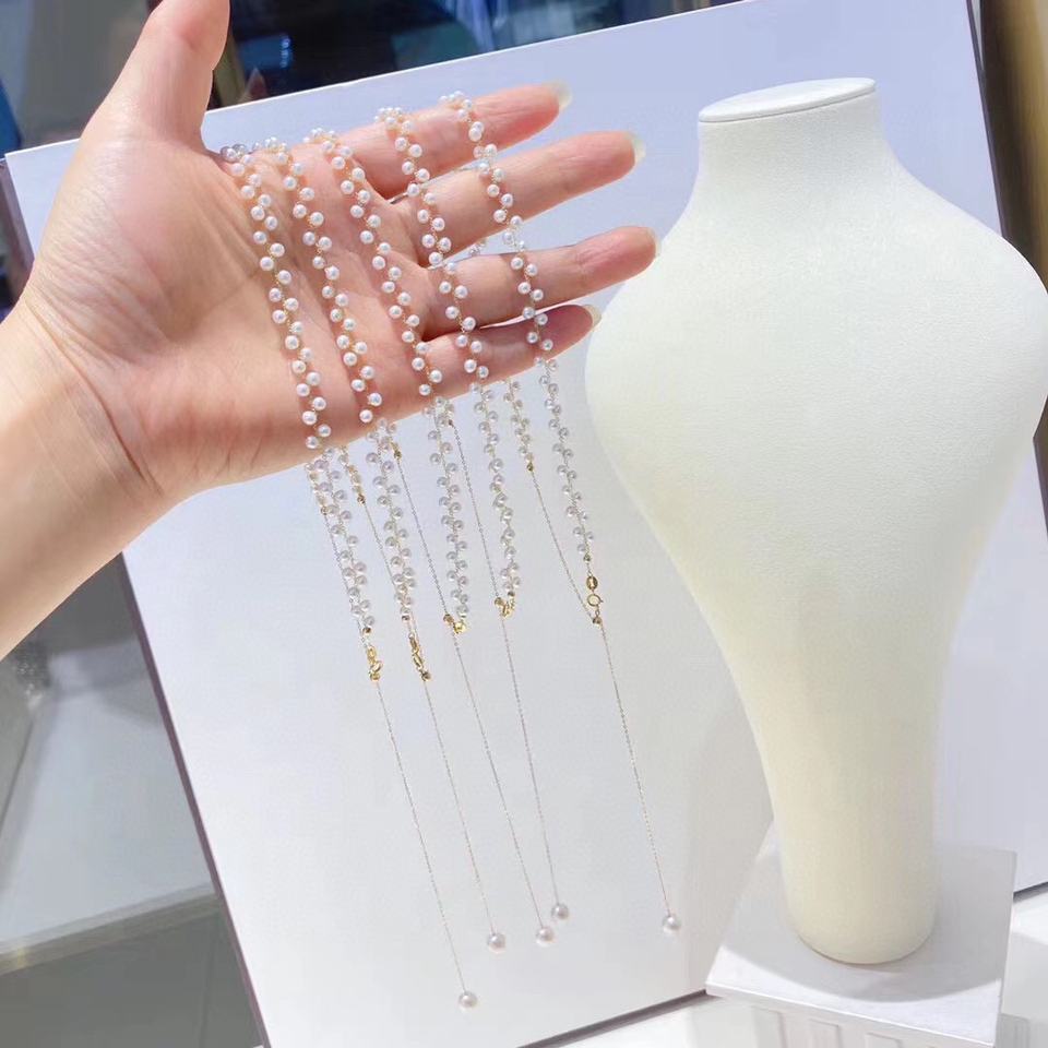 จี้ทองคำ G18k อเนกประสงค์ พร้อมไข่มุกน้ำจืดธรรมชาติขนาด 8-9 มม. แสงเงางาม สายสร้อยคอเงินแท้จากป่าน ของขวัญ