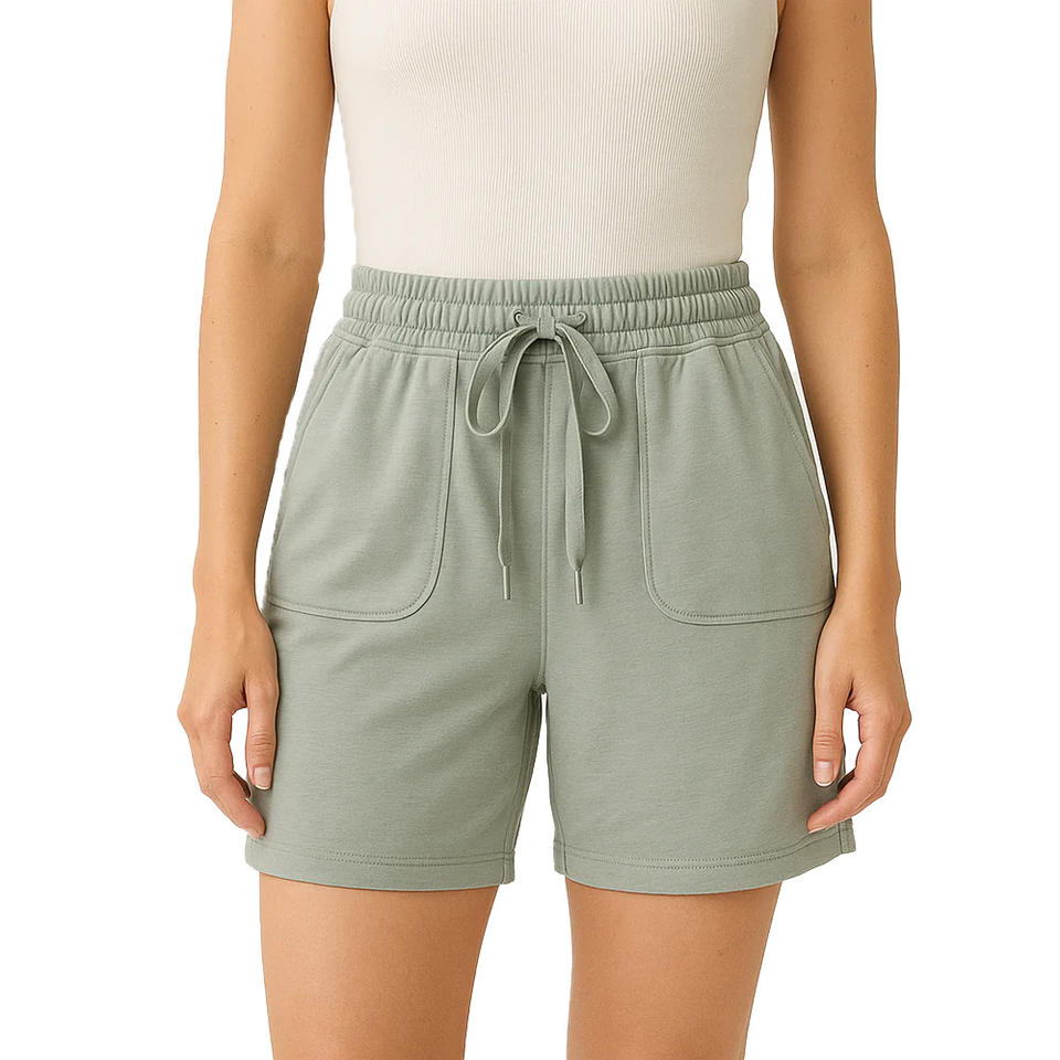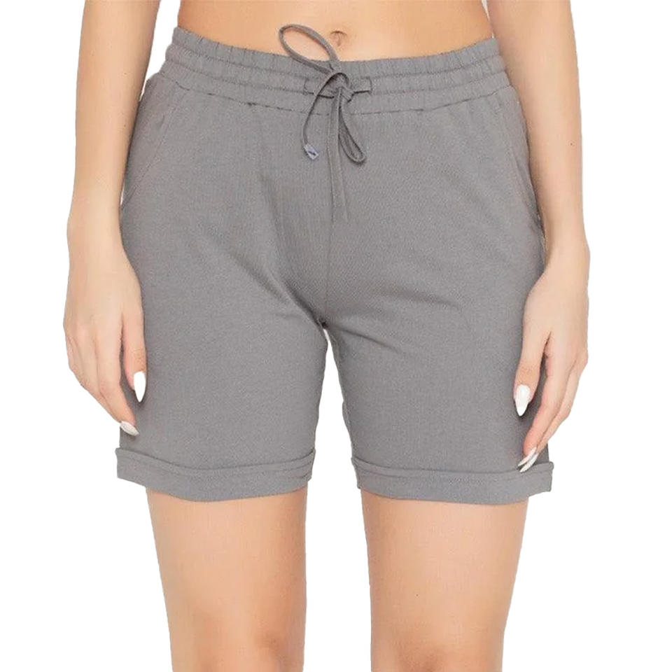 กางเกงขาสั้นถักอเนกประสงค์สำหรับผู้หญิงที่คู่กับถังรองเท้าผ้าใบหรือรองเท้าแตะที่สมบูรณ์แบบสำหรับการเดินทางถนนในสวนวันหรือเพียงแค่เย็น