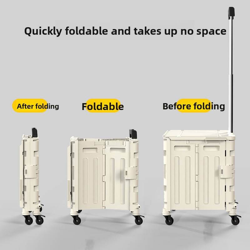 รถเข็นพลาสติกพับได้อเนกประสงค์พร้อมกระเป๋า รับน้ำหนักได้ 10 กก. สะดวกสบายสำหรับการเข็นของใช้ในครัวเรือนและอื่นๆ