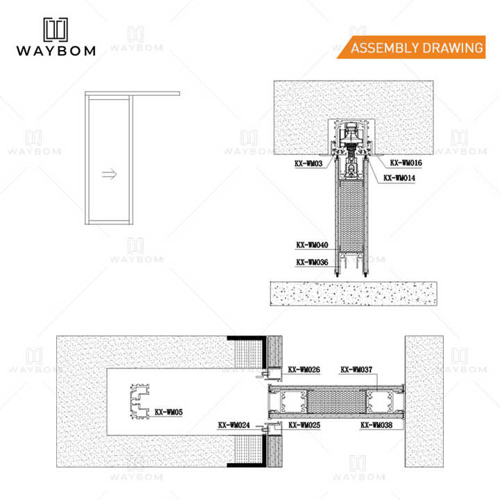 หมายเลขรุ่น:45 Aluminum Wooden Pocket Door