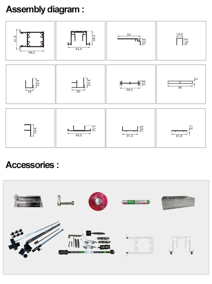 Accessories:Hinges Locks Door Closer Roller Blind Rivets Aluminum Caps Nuts