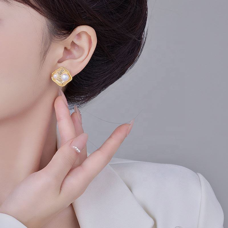 ต่างหูมุกเทียมประดับเพชร ดีไซน์เรขาคณิต ชุบทอง สไตล์หรูหราเบาๆ แฟชั่นใหม่ ของขวัญสำหรับผู้หญิง