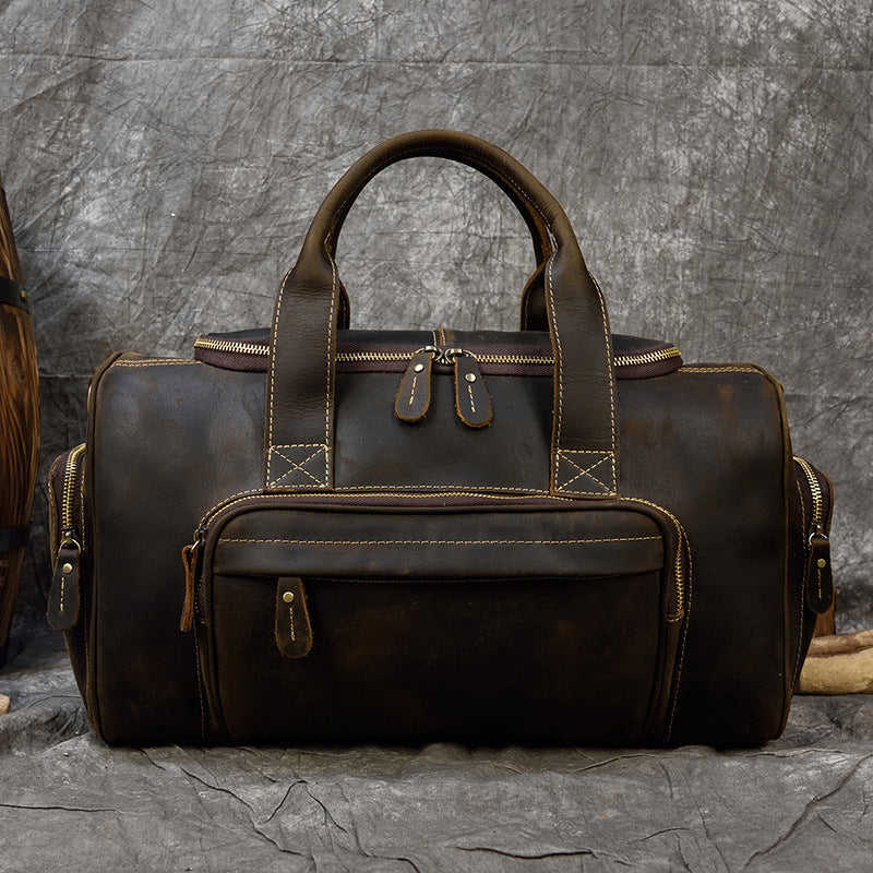 กระเป๋าเดินทางอเนกประสงค์สำหรับทุกเพศกระเป๋าสวยกระเป๋าเดินทางทรงดัฟเฟิลทำจากหนังคุณภาพสูง