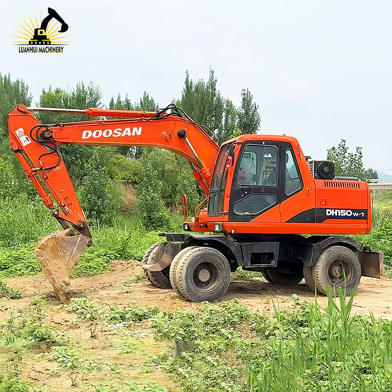 รถขุดที่ใช้ล้อ DX150W Doosan สำหรับการใช้งานที่หลากหลายอเนกประสงค์พร้อมตัวเลือกที่แนบมาหลายรูปแบบประสิทธิภาพมั่นคง