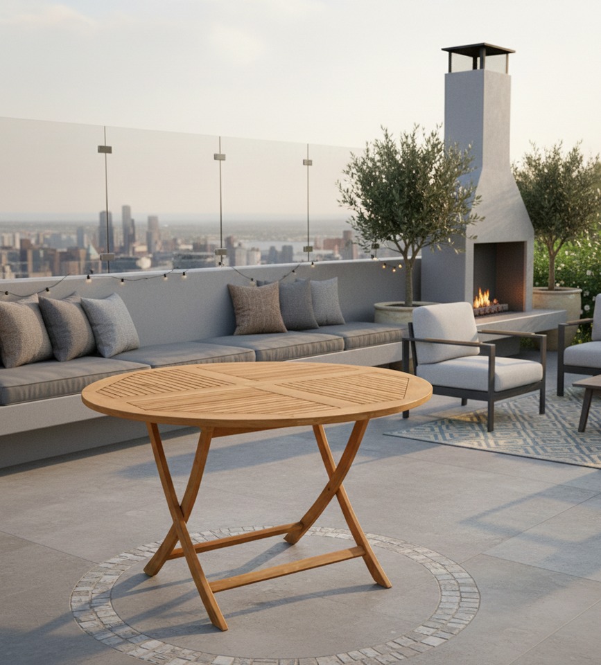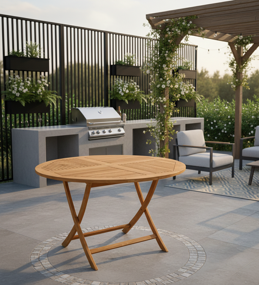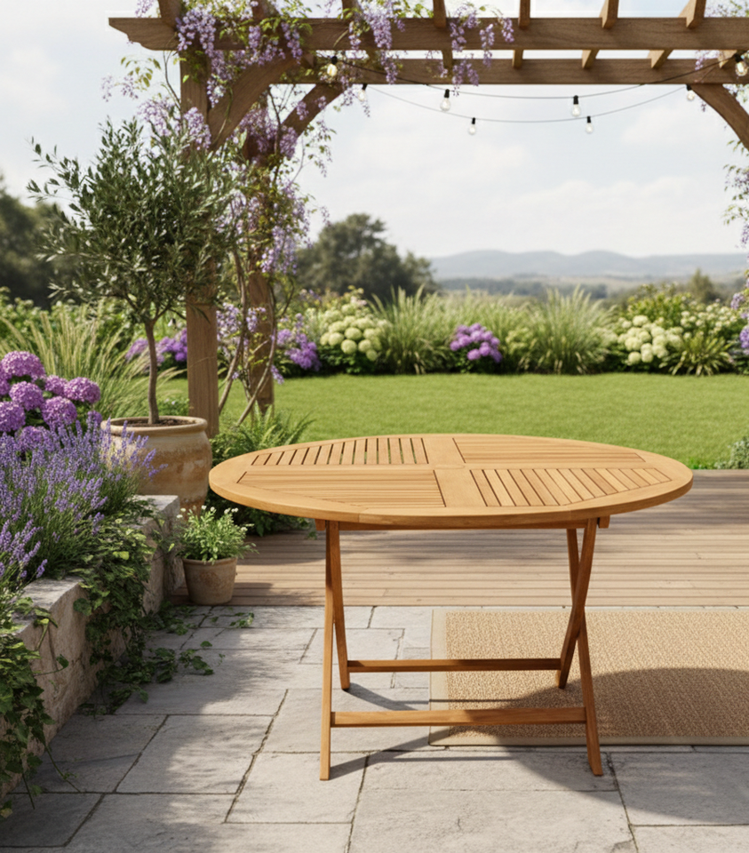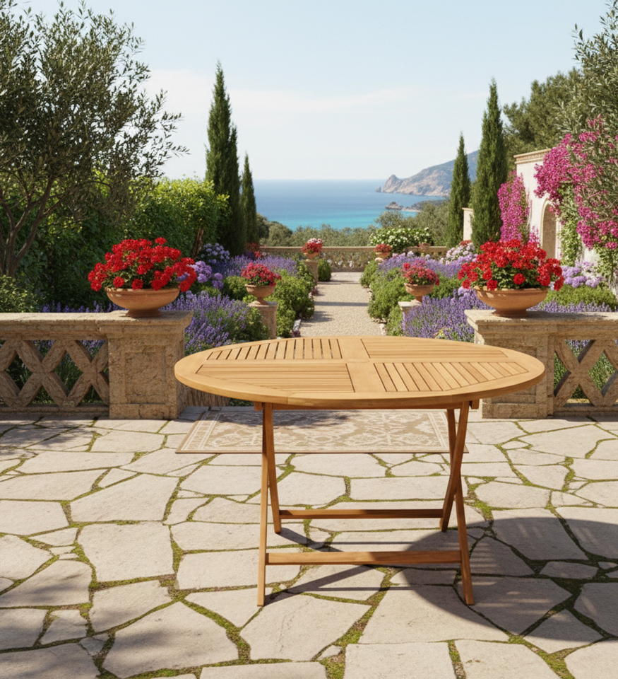 โต๊ะรับประทานอาหารกลางแจ้งทรงวงรีอเนกประสงค์ทำจากไม้สัก พร้อมส่วนขยาย เหมาะสำหรับสวน ลานบ้าน และสภาพแวดล้อมของรีสอร์ท