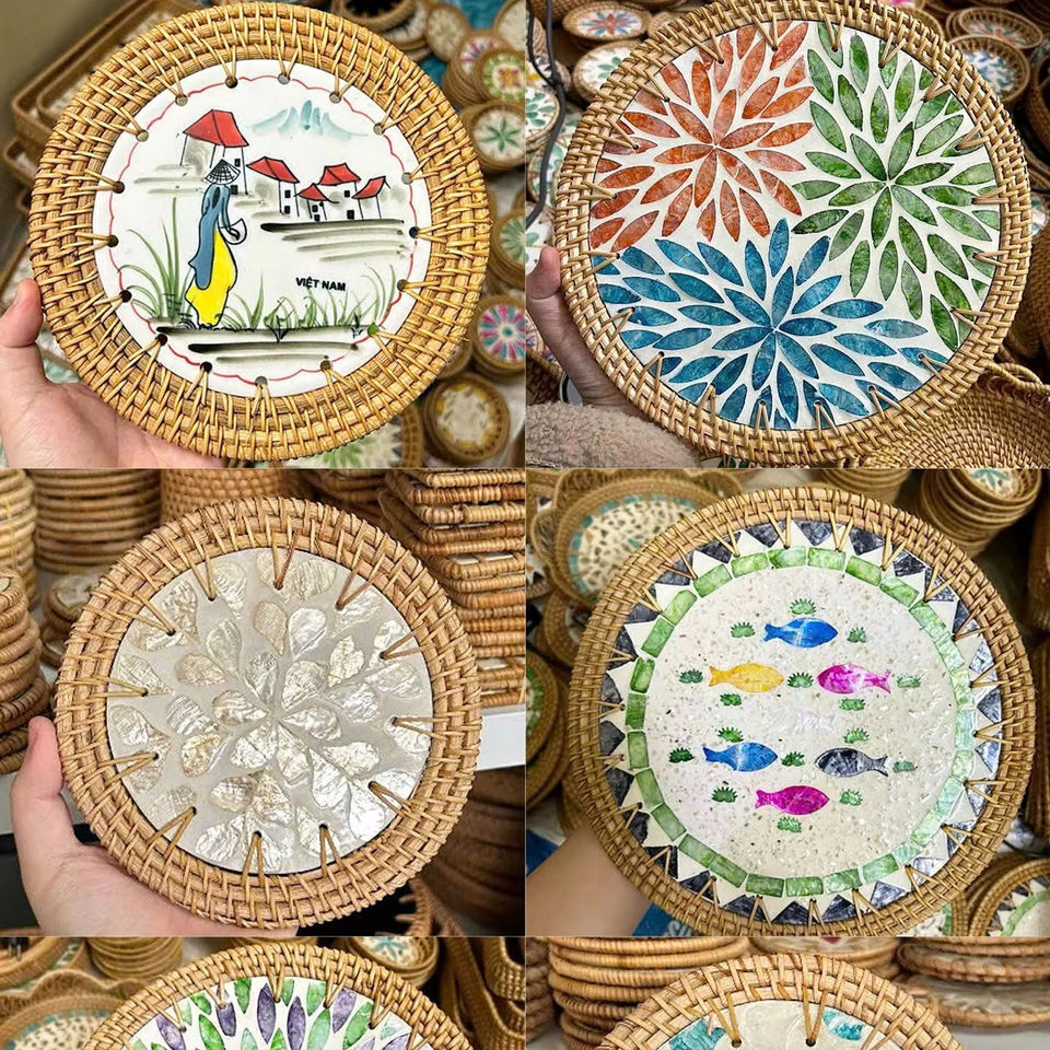 แผ่นรองแก้วหวายอเนกประสงค์ ลายมุก ทำมือจากเวียดนาม สำหรับใช้ในครัวและป้องกันโต๊ะ