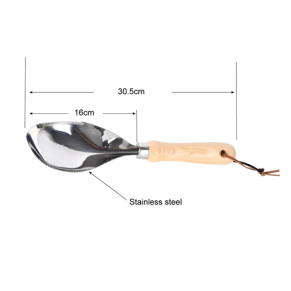 ชื่อผลิตภัณฑ์:ที่ตักดินด้ามไม้ทำจากสแตนเลสสตีล