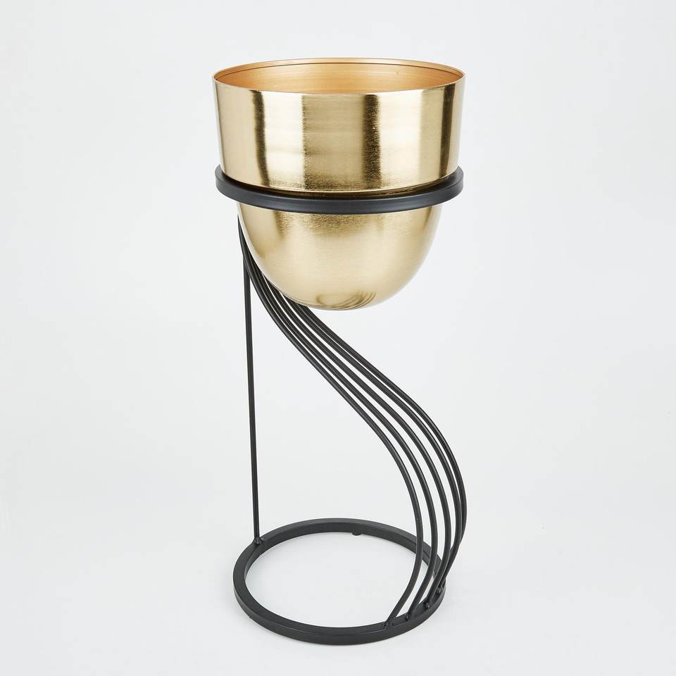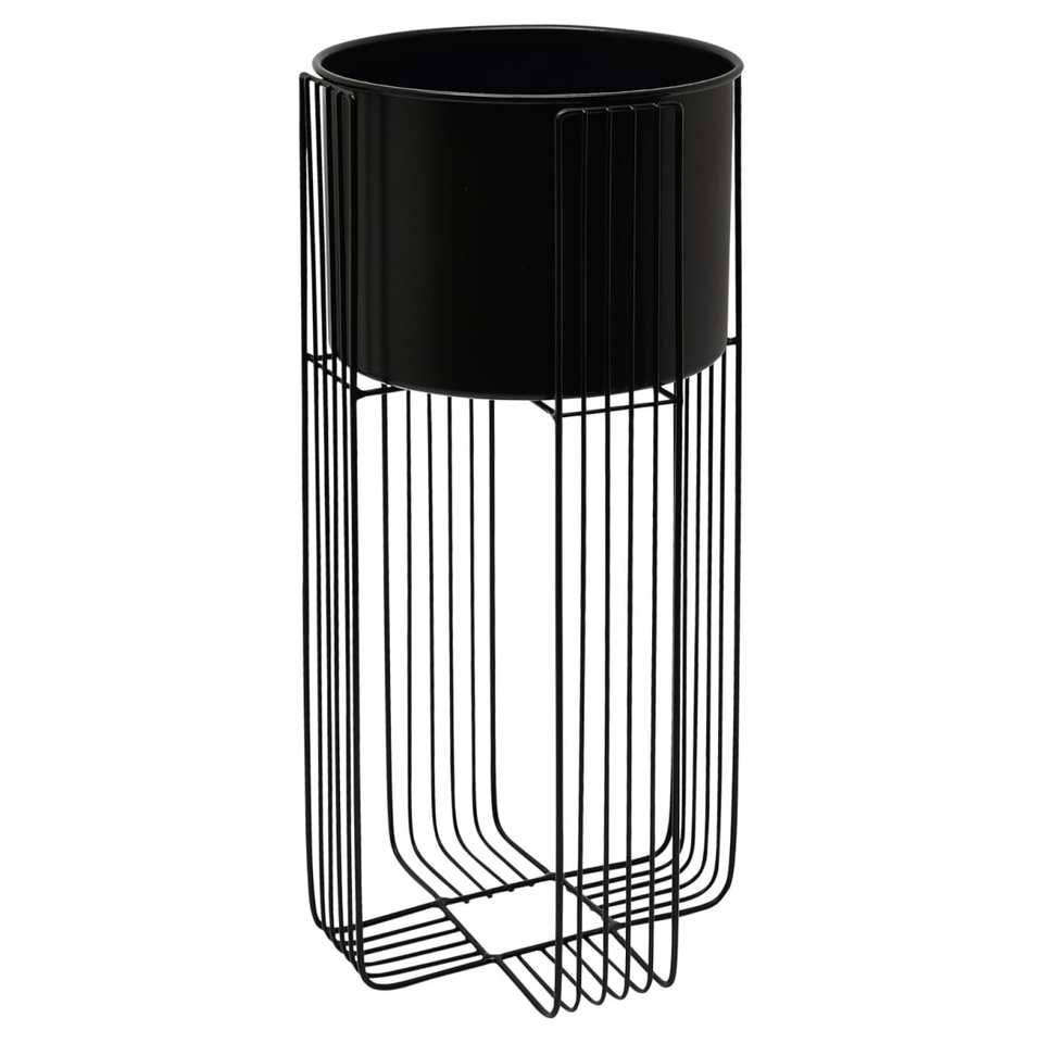 กระถางต้นไม้เหล็กสีดำทรงตั้งพร้อมขาตั้งลวดลายตาข่าย สำหรับตกแต่งสวน โรงแรม ภายในบ้าน สำนักงาน ทันสมัย แข็งแรง ทนทาน เคลือบด้วยสีฝุ่น