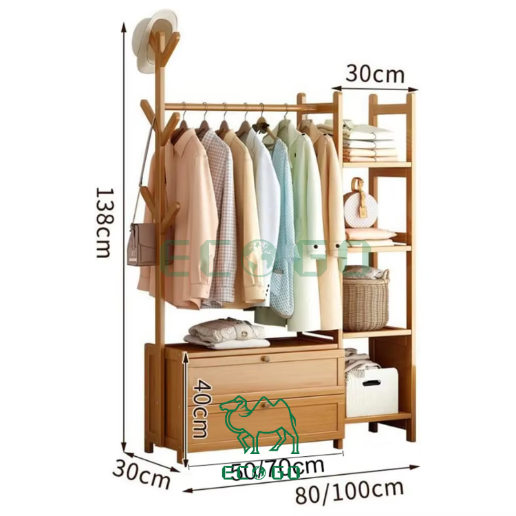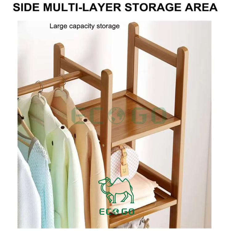 ที่แขวนผ้าแนวตั้งชั้นวางเสื้อโค้ทขนาดใหญ่ชั้นเก็บเสื้อโค้ทไม้ไผ่ไม้แขวนเสื้อตู้เสื้อผ้าตู้ไม้ไผ่