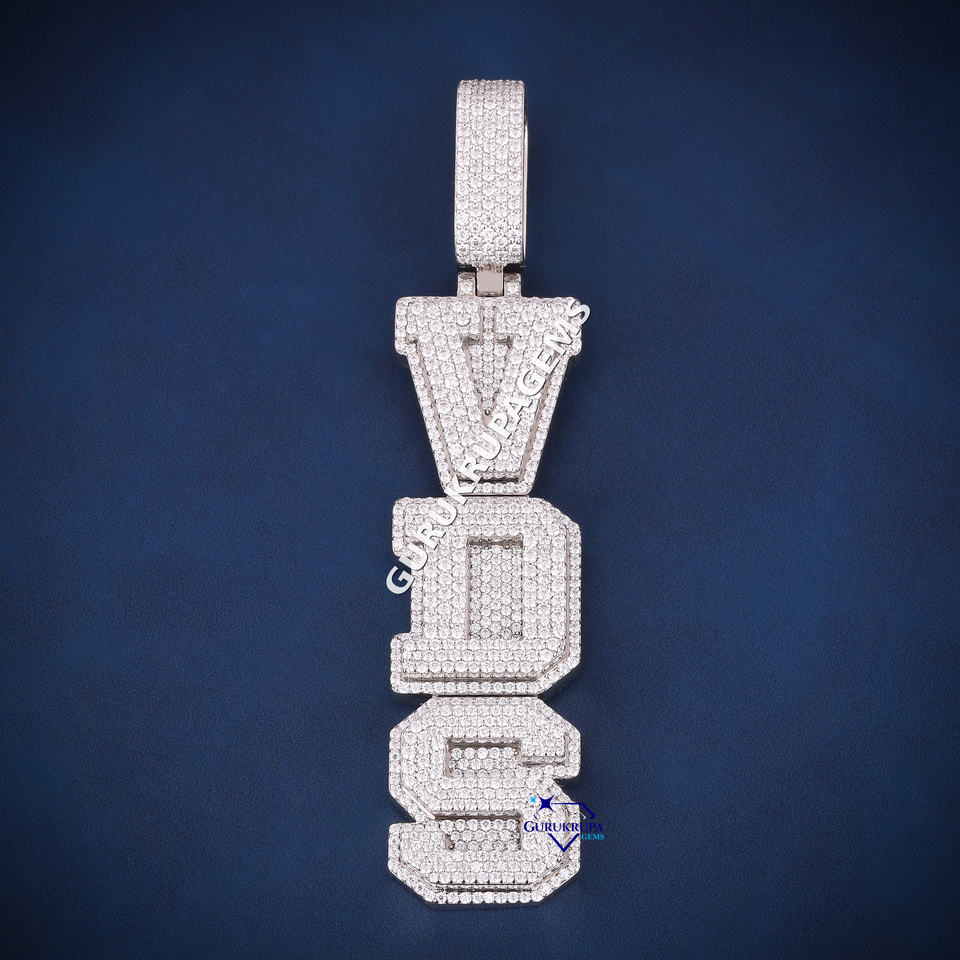 จี้เพชรรูปตัวอักษร VVS แนวฮิปฮอป925ทำจากเงินสเตอร์ลิงจี้เพชรแบบสั่งทำ