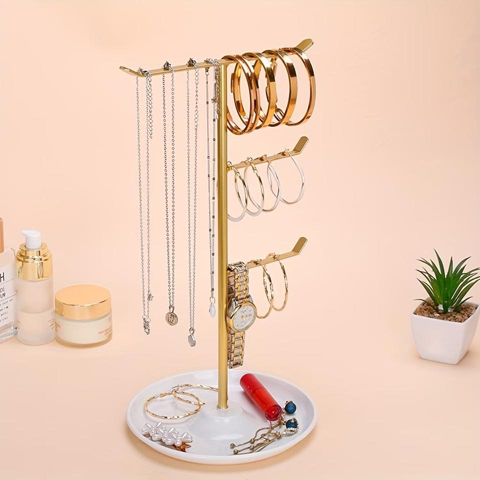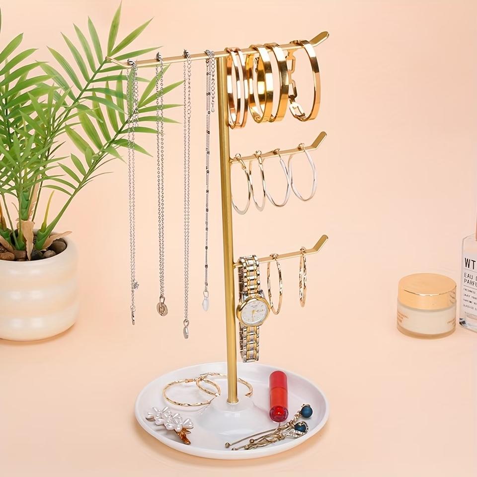 ที่วางเครื่องประดับแบบหลายแขนแนวตั้ง ประหยัดพื้นที่ สำหรับสร้อยคอและกำไลข้อมือ พร้อมฐานกลมที่มั่นคง ไม่พันกัน จัดแสดงได้อย่างเป็นระเบียบ