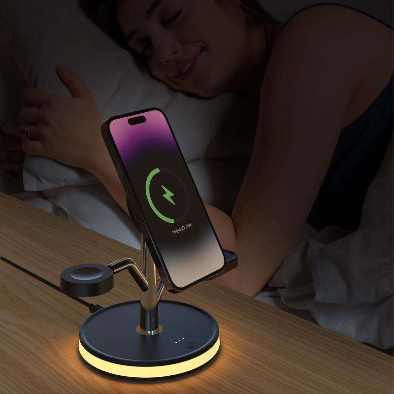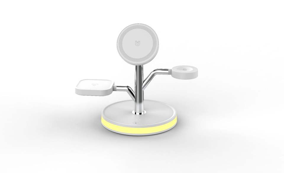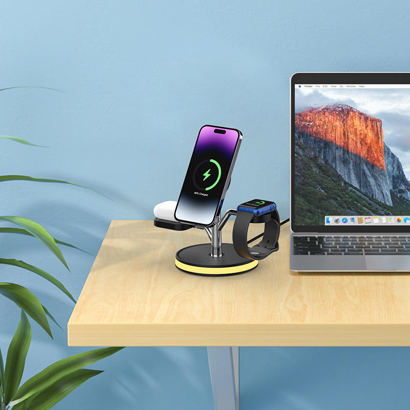 เครื่องชาร์จไร้สายสามในหนึ่งเดียวแนวตั้งสำหรับ Huawei สำหรับ Xiaomi สำหรับโทรศัพท์มือถือไฟฟ้าแอปเปิ้ลและนาฬิกาเคสแบตเตอรี่แม่เหล็ก